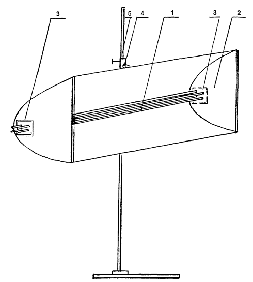 Рис. 7. Инфракрасная прожекторная установка с параболическим отражателем, оборудованным 4 трубчатыми электронагревателями.