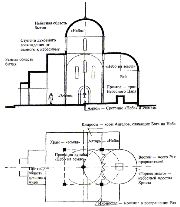 Христианский храм являет в мире образ Небесного Царства Божия, которое, существуя с начала времен, ожидает нас в будущей вечной жизни. Архитектура храма призвана показать нам этот образ, используя присущие ей средства художественной выразительности через символику пространственной композиции и синтез искусств.