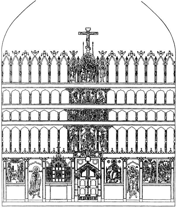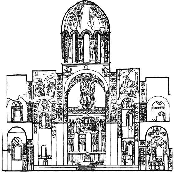 Сведения по системе декорации, иконостасам и внутреннему убранству православных храмов даны в сжатом изложении, так как служат предметом особой специализации.