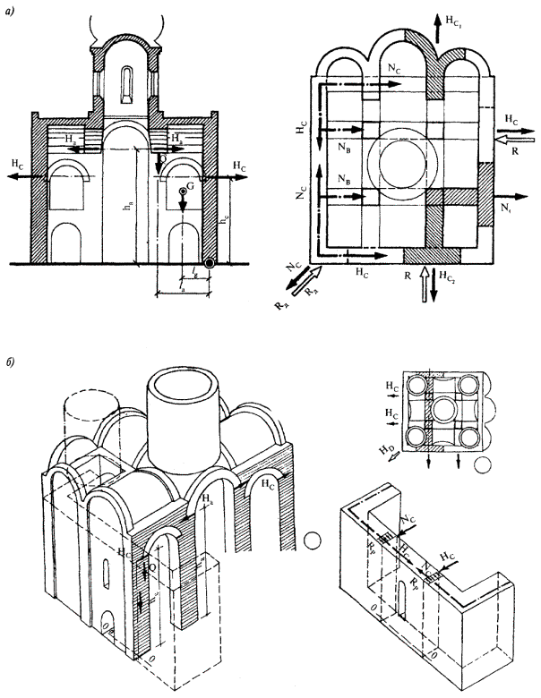 Бессонов Г.Б. Исследование деформаций, расчет несущей способности и конструктивное укрепление древних распорных систем. - М.: Союзреставрация, 1989.