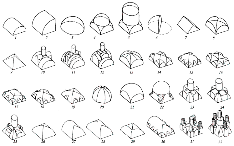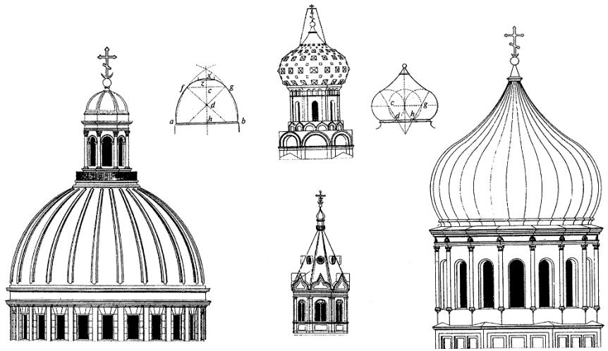 примеры решений архитектурных элементов и конструкций, внутренней декорации и убранства храмов.