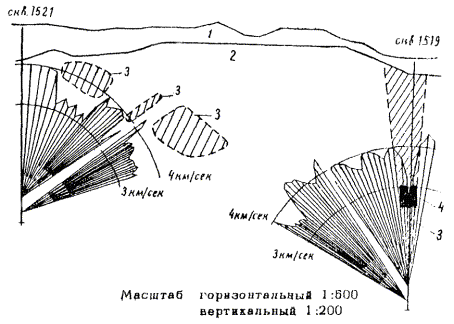 2) низкие значения распространения продольных и поперечных волн отвечают зонам повышенной трещиноватости;