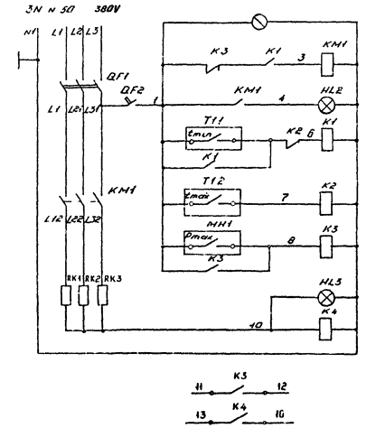 Включаются выключатели QF1, QF2, лампы H1 «Сеть» и Н2 «Нагреватель» должны отключиться.