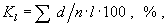23. Линейный коэффициент внутренней закарстованности (K1) - отношение сумм диаметров или поперечников (Σ d, м) карстовых каверн и полостей, измеренных по образующим керна, к длине линии замера (l, м). Определяется по керну буровых скважин по формуле