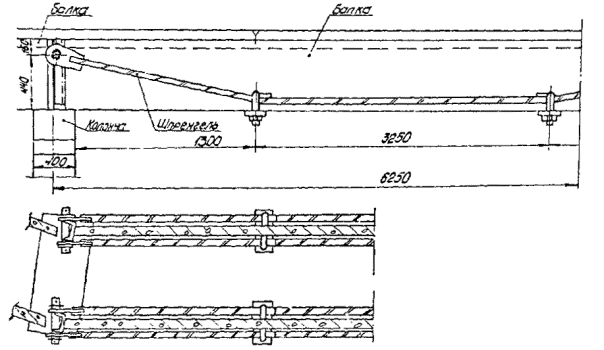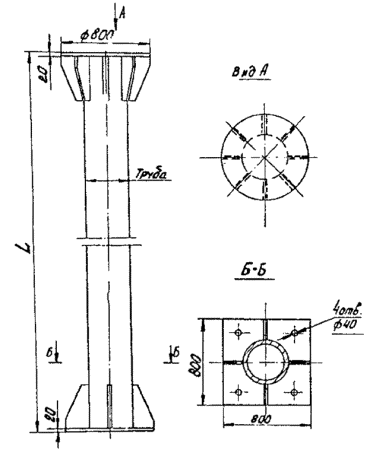 Колонны прямоугольного сечения, в верхней части имеют развитый оголовок, на который опираются балки. Колонны армированы каркасами и стержнями. Фундаменты под колоннами сборные, стаканного типа, армированы арматурой и стержнями.