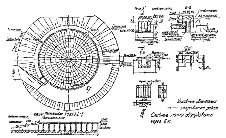 Железобетонные цилиндрические резервуары, эксплуатирующиеся в системе Миннефтепрома, построены по типовым проектам 7-02-296, 7-02-158, 7-02-164-ЖБР 10000 и Т-1470, 7-02-208 ЖБР 30000.