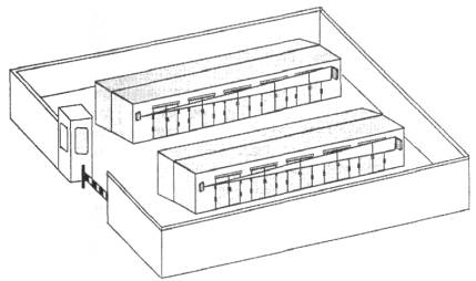Крыши одноэтажных зданий (гаражей, хозяйственных построек), являющихся продолжением периметра объекта, должны иметь механическую защиту от проникновения на них. Для усиления защиты отдельных объектов, в частности автостоянок, следует устанавливать по верхнему краю внешнего ограждения «козырек» из трех-четырех рядов колючей проволоки или инженерное средство защиты типа «Спираль АКЛ».