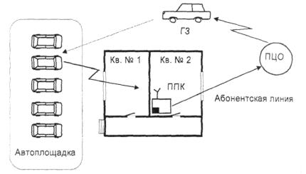 - централизованную охрану с помощью радиосистем или СПИ, работающих по занятым телефонным линиям, принадлежащим другим собственникам. (К таким объектам относятся ГСК, крупные автостоянки, отдельные коттеджи, квартиры и т.п.).