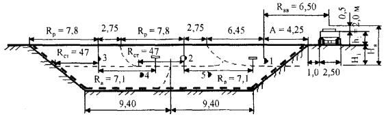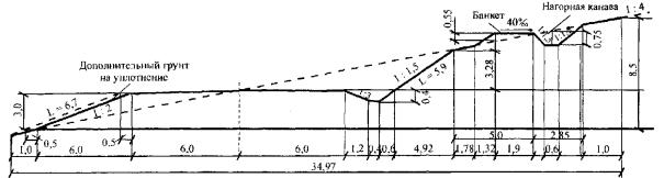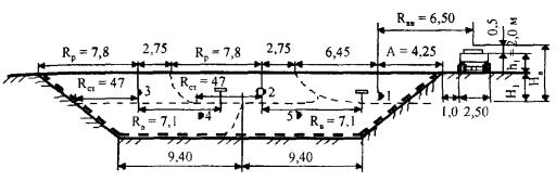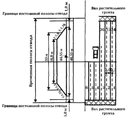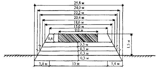 Рис. 1. Осредненный поперечник земляного полотна для участка линейных работ