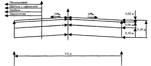 11. Устройство щебеночного основания, обработанного в верхней части пескоцементной смесью методом пропитки (вдавливания).
