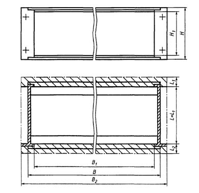 5.3.1. Координационные размеры блочных каркасов Н, В, L и соответствующие размеры Н1, В1 и L1 проемов для установки БНК1 обозначены на рисунке 3.