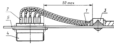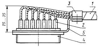1 - жгут; 2 - изоляционная трубка; 3 - скоба; 4 - соединитель; 5 - кронштейн