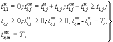 2.12. Расчеты временных характеристик вариантов организации строительно-монтажных работ сводятся к определению продолжительности реконструкции предприятия в целом, а также к продолжительности сроков начала и окончания реконструкции отдельных этапов, объектов и цехов, базируются на расчетах временных характеристик видов работ. Срок начала работы j на объекте i в общем случае определяется следующим образом: вначале рассчитывается момент времени, в который открывается фронт работ, а затем проверяется, свободны ли ресурсы, задействованные в рассматриваемом виде работ. Вышеизложенное описывается формулой