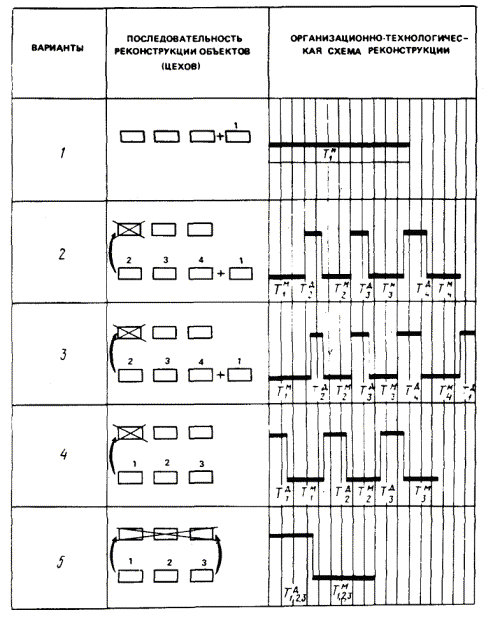 расчет временных характеристик вариантов организации работ по реконструкции предприятия;