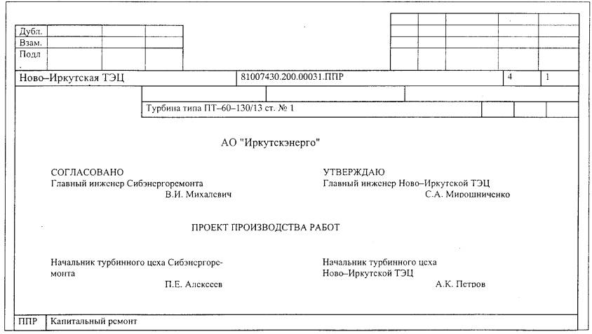 3.5 Полный комплект ППР согласуется с ремонтными предприятиями, участвующими в ремонте установки, и утверждается главным инженером энергопредприятия.