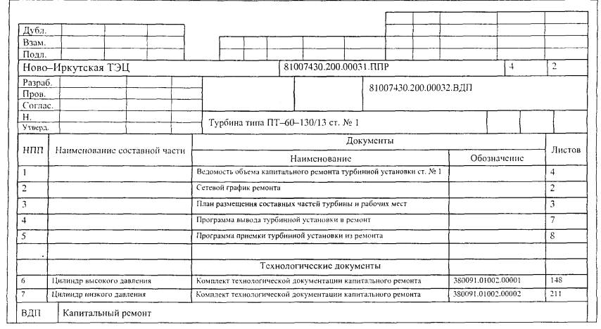 4.3.1 ВДП предназначена для указания полного состава документов ППР.