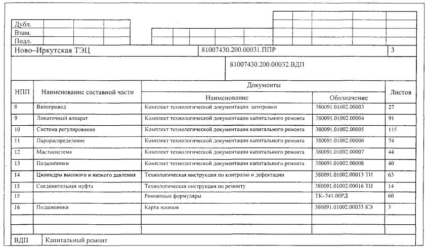 При этом энергопредприятие, как правило, должно разрабатывать следующие документы ППР: