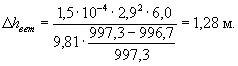ρ - плотность воды, кг/м3;