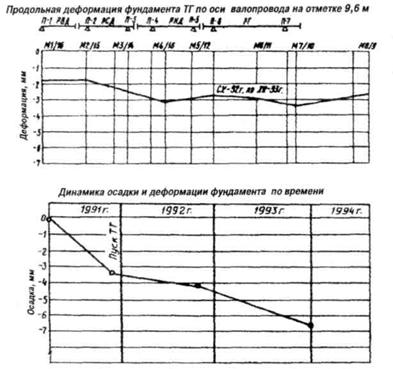 1.3. Инструментальные измерения за осадкой фундаментов основного оборудования, производственных зданий, гидротехнических сооружений и деформациями строительных конструкций ТЭС производятся в соответствии с ПТЭ [1] при всех грунтовых условиях, кроме скальных, в целях определения абсолютных и относительных значений осадки, деформаций и сравнения их с допустимыми (расчетными), уточнения расчетных данных физико-механических характеристик грунтов основания, контроля состояния зданий и сооружений в процессе их возведения и эксплуатации, разработки и проведения мероприятий по предупреждению опасных деформаций.