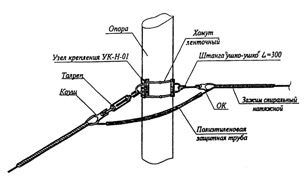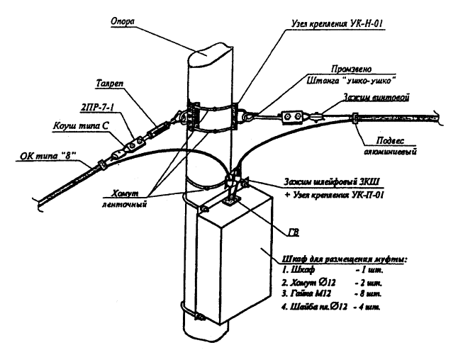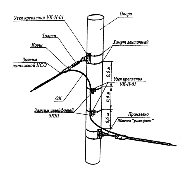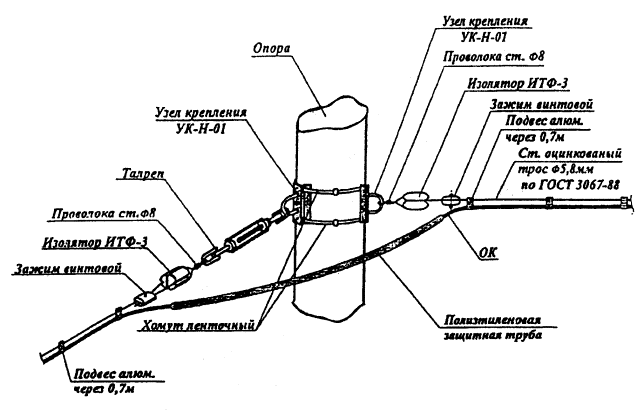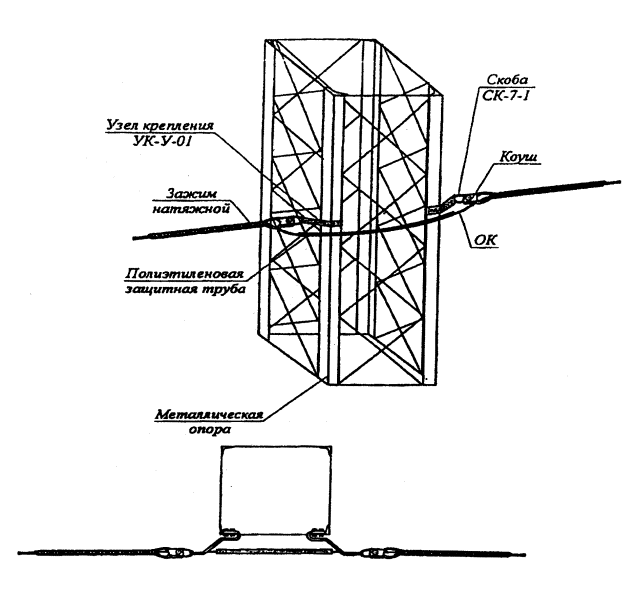 2.1.3 Оптические кабели должны размещаться на ВЛ путем подвески ОКСН на опорах ВЛ (их частях) с помощью линейной арматуры. Подвеска ОК может производиться на опорах из любого материала.