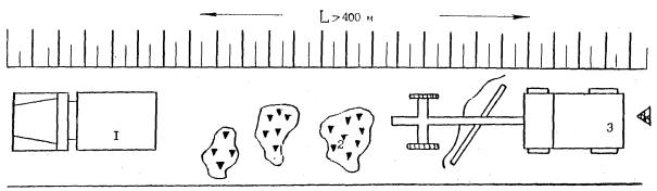 1 - автомобиль самосвал; 2 - материал; 3 - автогрейдер ДЗ 99-1-4; ДЗ-61; ДЗ-61А.