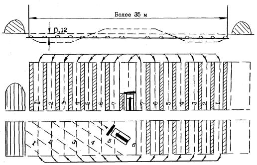 2.6. Продольно-поперечную схему рекомендуется применять при снятии растительного слоя значительной толщины при ширине земляного полотна до 35 м (работы выполняются универсальным бульдозером).