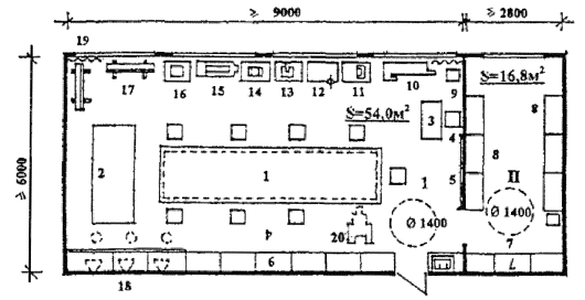 17. Кульман 18. Местный отсос 19. Шторы затемнения 20. Место для инвалидной коляски |