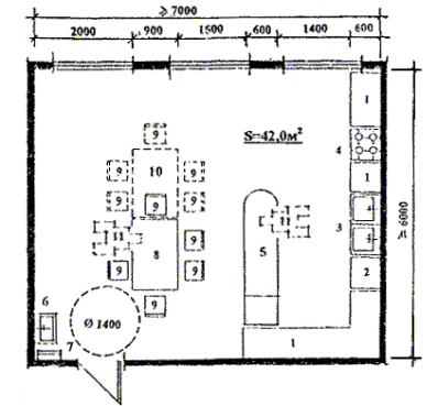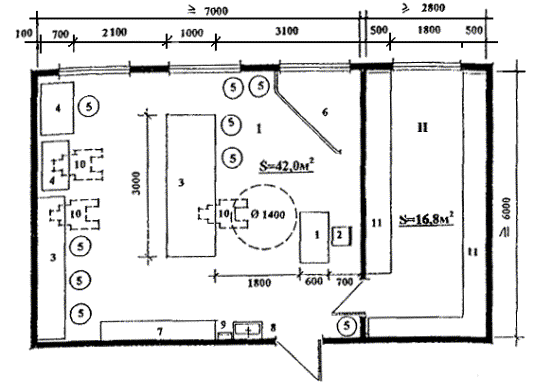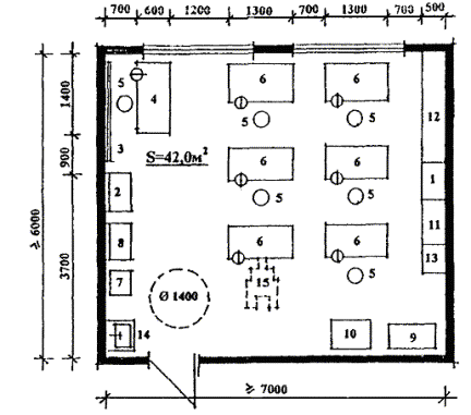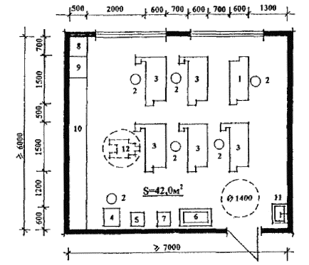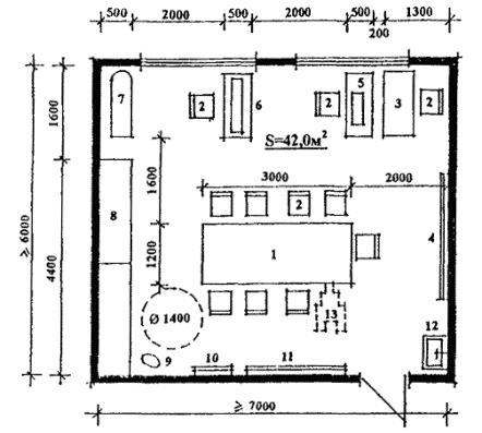 1. Бассейн для моделей 2. Стол рабочий 3. Стол учителя 4. Стул (табуретка) 5. Доска классная 6. Шкаф застекленный |