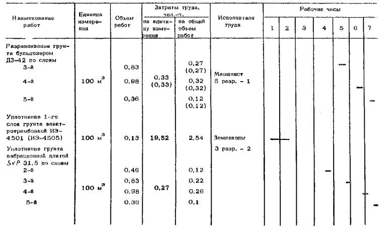 График производства работ по уплотнению связного грунта II группы электротрамбовкой ИЭ-4504 (в траншее с двумя трубопроводами)