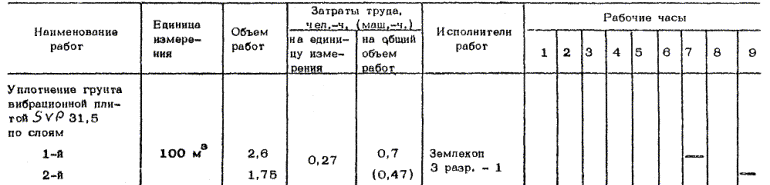 График производства работ по уплотнению несвязного грунта I группы вибрационной плитой SVP 31,5 (в траншее с двумя трубопроводами)