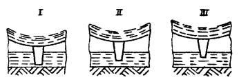 I - начало уплотнения; II - промежуточная фаза; III - конец уплотнения