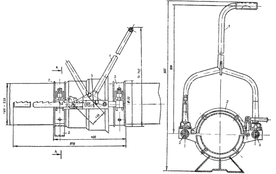 1 - рычаг; 2 - зажимной хомут; 3 - направляющая