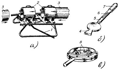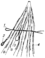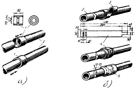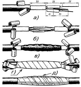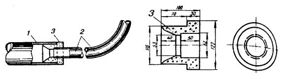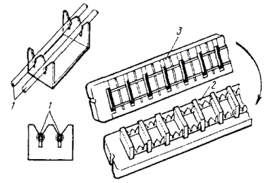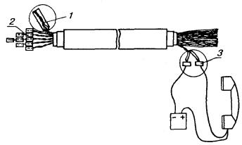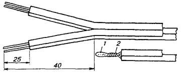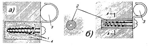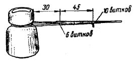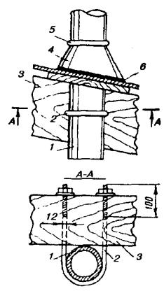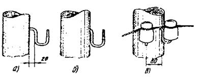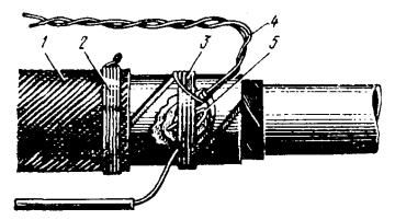 1 - хомутик из перевязочной проволоки; 2 - стальная проволока диаметром 4 - 5 мм; 3 - витки пропаять