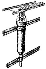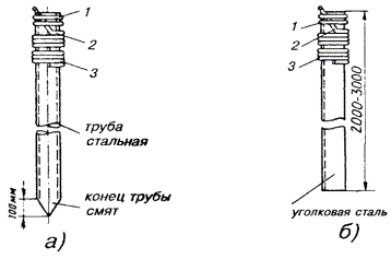 18.59. Выбор типа заземлителя для устройства заземления у абонента производят в зависимости от местных условий. В городе для заземления используют стальные вертикальные электроды - трубы или уголки. Протяженные проволочные заземлители оборудуют в сельской местности.
