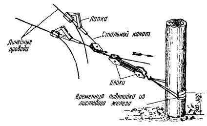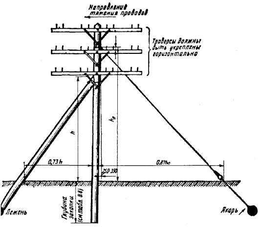 В качестве токоотвода и заземлителя могут быть использованы оттяжки опор. При этом оттяжки должны быть расположены от подземных кабелей на расстоянии не менее 25 м.