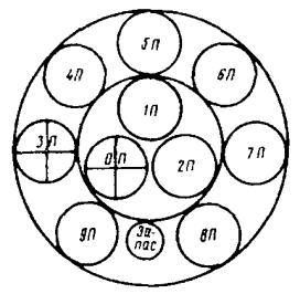 18.58. Заземлители многоэлектродного контура следует располагать так, чтобы токоотводный провод занимал центральное место и был удален от крайних электродов заземления не более, чем на 12 м. Если это условие невыполнимо, то необходимо делать несколько токоотводов, соединяя их параллельно на выходе из траншеи первого токоотвода.