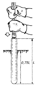 а) в месте, где должен быть забит электрод, отрыть котлован глубиной 2,5 м, круглый - диаметром 0,8 - 1,0 м, или квадратный - 1´1 м;
