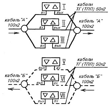б) кабельные линии межстанционной (межузловой) связи, магистральные кабельные линии вне зависимости от готовности питаемых шкафных районов и шкафные районы вне зависимости от питающих магистралей;