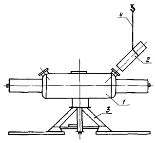 4.5.2. Установить на раму патрубок, зафиксировать его четырьмя болтами. Вваренный в патрубок ниппель должен быть обращен в сторону ближайшего конца рамы вдоль ее продольной оси.