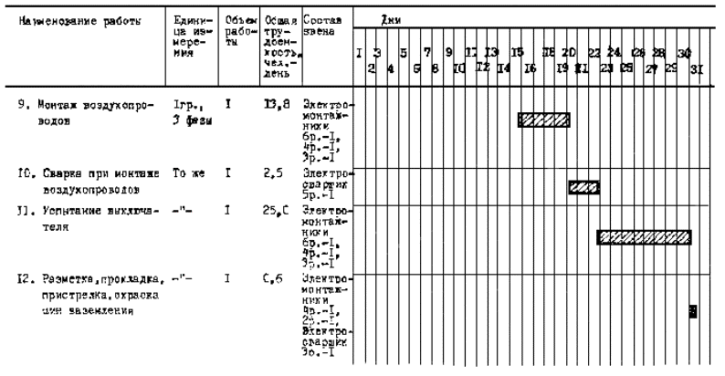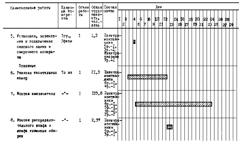 Калькуляция трудовых затрат и графики монтажа приведены для трех полюсов. Трудозатраты на наладочные работы графиком монтажа и калькуляцией не учтены.