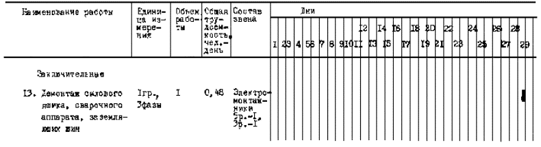 4.2.2. Ознакомление электромонтажников с технической документацией, объемом работ и принятой технологией. Уточнение рабочего графика производства работ в соответствии с технологической картой и конкретными условиями монтажа.