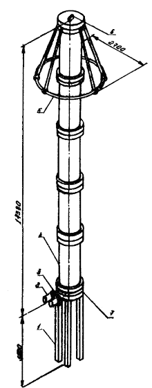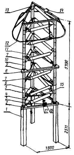 1 - швеллер № 24; 2 - уголок 25´25; 3 - талреп; 4 - труба; 5 - линейка; 6 - рейка; 7 - изолятор