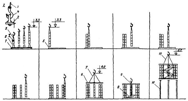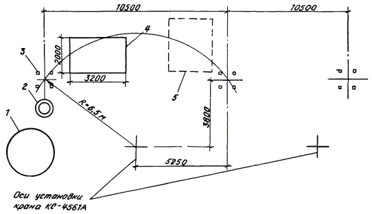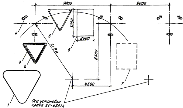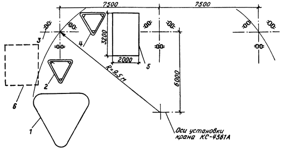 2.2.4. Доставляются на строительную площадку монтажные механизмы, оборудование, инвентарные устройства и размещаются в соответствии со схемами, приведенными на рис. 4 - 6.