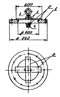 1 - кольцо экранирующее; 2 - плита; 3 - опора; 4 - настил из досок; 5 - площадка разгрузки ящиков с изоляторами и элементами