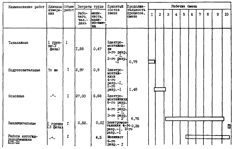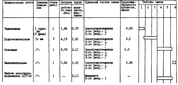 2.2.2. Уточняется рабочий график производства работ в соответствии с технологической картой. Электромонтажники знакомятся с технической документацией, объемом работ и принятой организацией работ. Бригада инструктируется по технике безопасности ответственным руководителем работ.