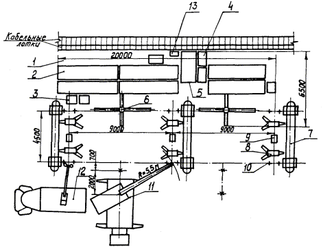 4.2.4. Доставка на монтажную площадку монтажных механизмов, оборудования, инвентарных устройств и размещение их в соответствии со схемой, приведенной на рис. 4 - 6.