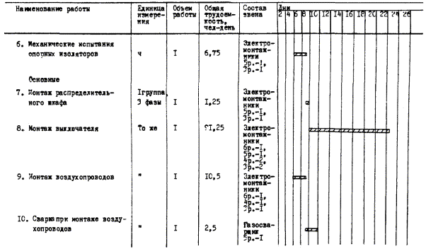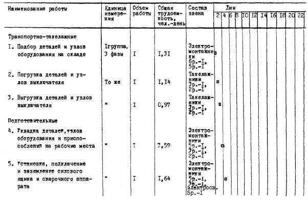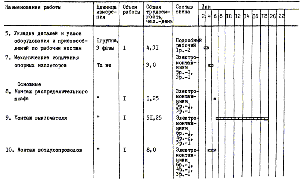 Калькуляции трудовых затрат и графики монтажа приведены для трех полюсов выключателя.