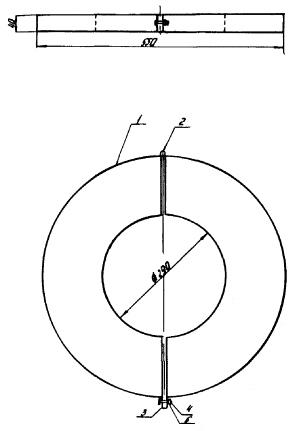 1 - полукруг из доски толщиной 40 мм, ГОСТ 24454-60; 2 - петля ПН5-40, ГОСТ 5088-78; 3 - полоса стальная горячекатаная 40´4 мм, l = 150 мм, ГОСТ 103-76; 4 - болт М6, ГОСТ 7798-70; 5 - гайка М6, ГОСТ 5915-70.