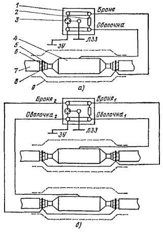 Рис. 1. Схема соединений кабеля, имеющего изолирующие покровы типов БпШп, с ЛЗЗ: