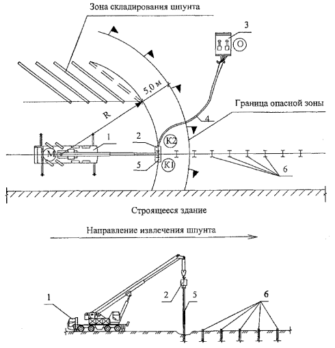 2.1 Извлечение шпунта следует производить механическими устройствами, способными развивать выдергивающие усилия в 1,5 раза превышающие усилия, определенные при пробном извлечении шпунта в данных или аналогичных условиях.
